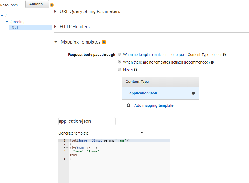 Select Integration Request and expand the Body Mapping Templates section to add a mapping template.